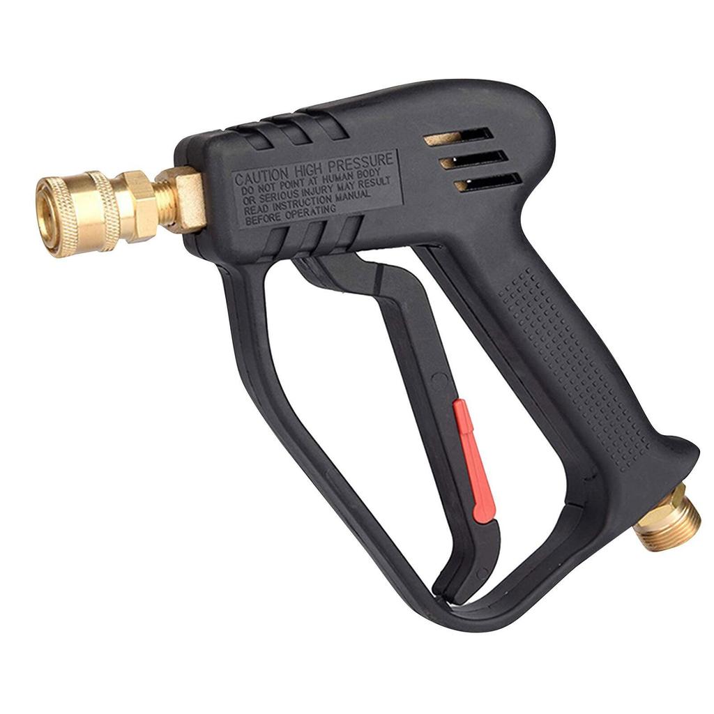 Short high pressure washer with 5 adjustable angle nozzles for domestic and high pressure washers. Working pressure up to 4000 psi, high quality construction, higher pressure resistance and longer service life. The flexible locking key accidental and ensures safer cleaning work.