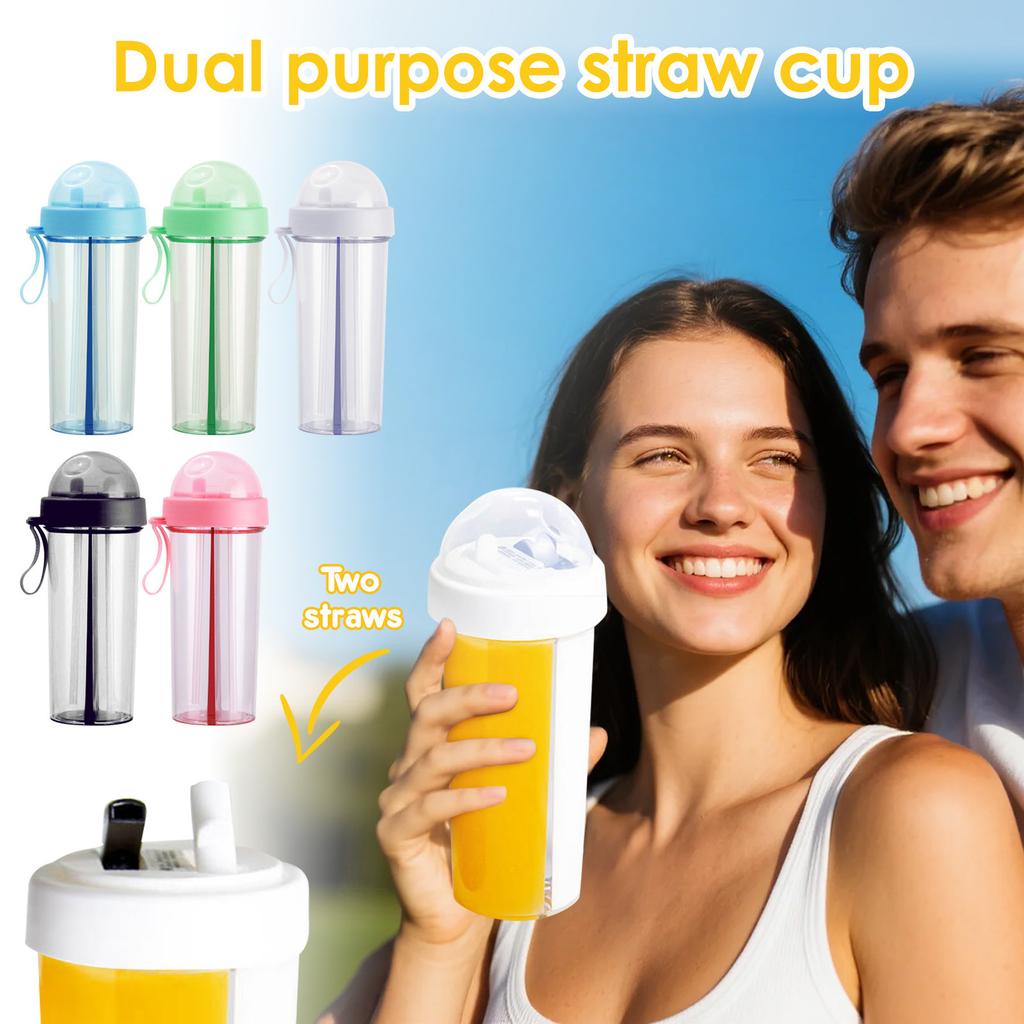Creative Water Cup,One Cup Of Two Different Drinks Two Straws Couple Outdoor Drinking Cup For Camping Hiking Backpacking Travel Description: Two drinks in one cup, 2 kinds of enjoyment: Whether you want milk tea, juice, flower tea or milk, etc., all you need is one cup! This 2 IN1 cup allows you to enjoy two different drinks without stirring them, satisfying your multiple taste needs at once. For those girls who like to explore fresh tastes, get your hands one! Removable straw design for easy cleaning, drink while exercising your cheeks and be a V-faced girl : To get the wonderful effect of V-faced, besides exercising, proper diet is also important. Our partitioned cups are equipped with removable straws for easy cleaning and at the same time combined with exercising your cheeks, making every opportunity to drink water a opportunity to exercise your face. Two-color suction, two-color distinction and with a straw for health and hygiene : This 2 IN1 cup not separates different drinks, but the two-color design is also very practical. When you with your girlfriends, the respective straws can avoid the health risks associated with sharing mouth cups. Also, the two-color design makes your drinks more compartmentalized, so you won't have to worry about touching the wrong one! Leak-proof seal, sealed silicone ring curved lid, double layer leak-proof : One of the best guarantees when buying a 2 IN1 cup is the double layer leak-proof, including the sealed silicone ring and curved lid. In order to prevent water or drinks from leaking out, do a job of aligning the - lid and tightening it before use, so that accidents can be avoided. It is the perfect gift, exquisite shape, safe material, double enjoyment : Such a delicate and practical 2 IN1 cup can be used not for yourself, but also a perfect gift for your family, friends or lovers. We not focus its practicality, but also its material safety and reliable quality, making this 2 IN1 cup the perfect shopping choice for you. Specification: Material: plastic Note: There might be 2-3cm errors of dimension data due to manual measurement. There might be slightly color difference due to different light and monitor effect. Package includes: 1*Double cup