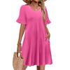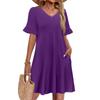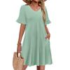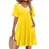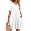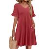 Women A Line Sun Dress Short Sleeve V Neck Dress With Pockets