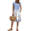 4.This casual summer maxi dress featured with floral design and middle side slit but cut with bohemian floral prints, which gives you a sense of sexy but also revealing . Dresses for women will modify the neck and shoulder, make you and attractive. The dress length looks lengthen your legs, adding a unique feeling .