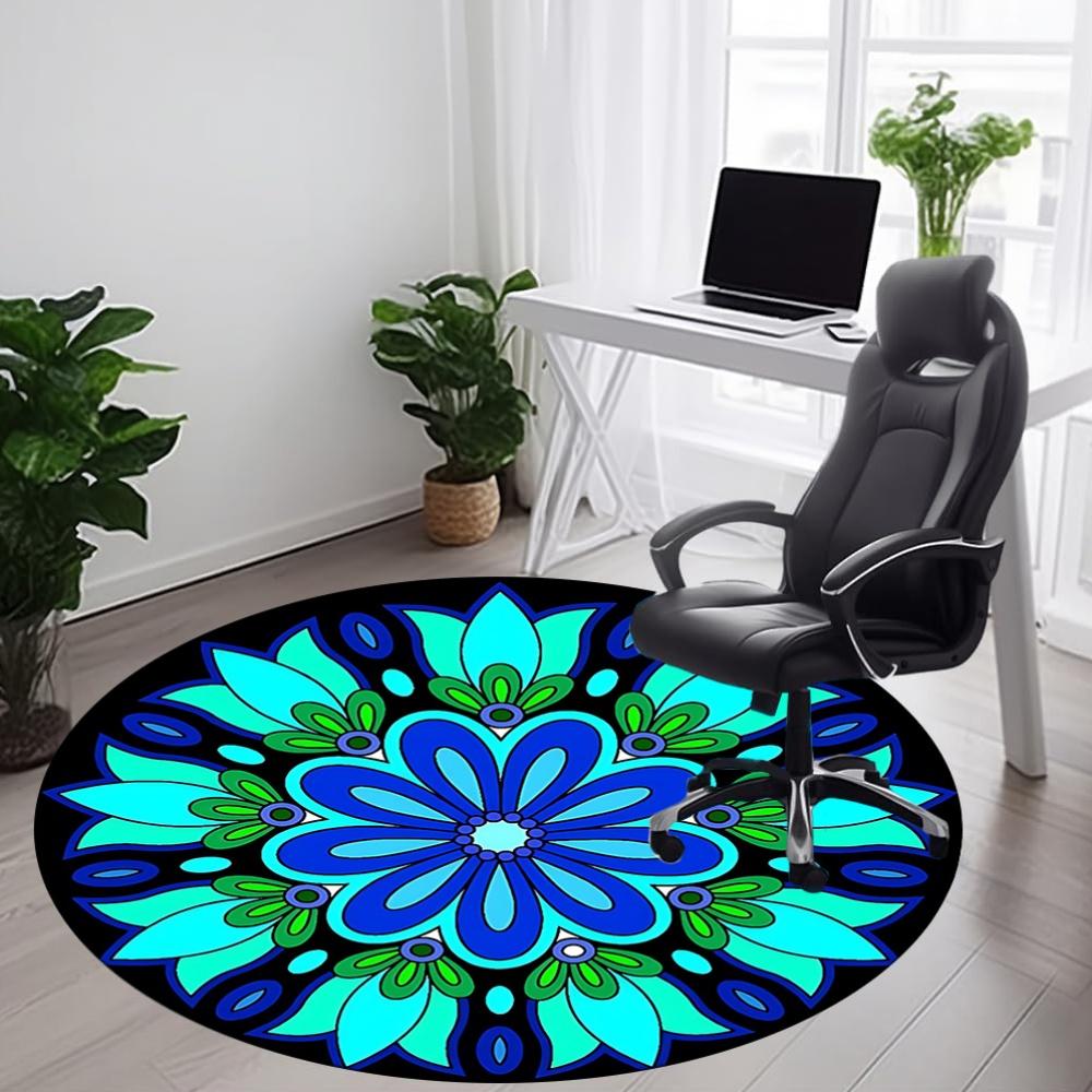 1pc Floral Mandala Pattern Carpet, Round Non Slip Durable Large Size Office Carpet, Suitable for Office
