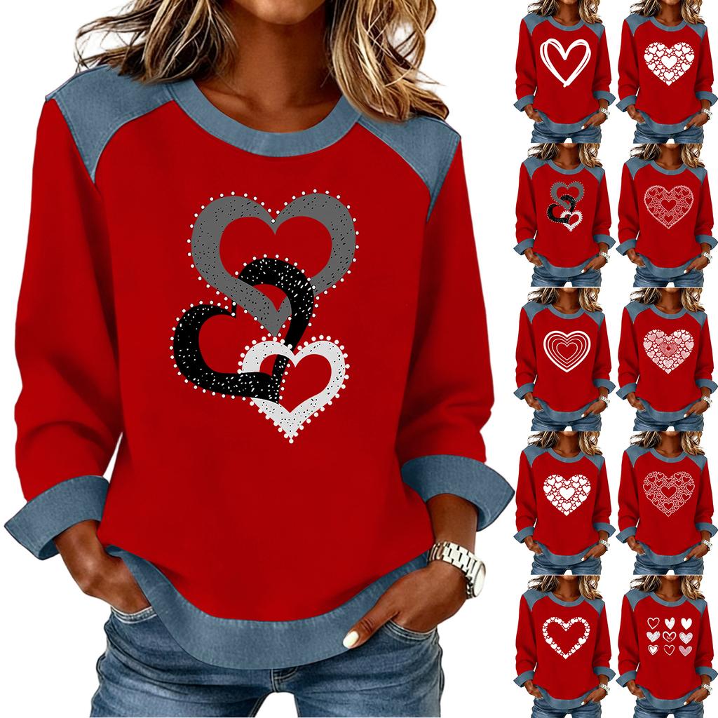Women Denim Collar Patchwork Stitching Sweatshirt Casual Pullover Long Sleeve Shirts