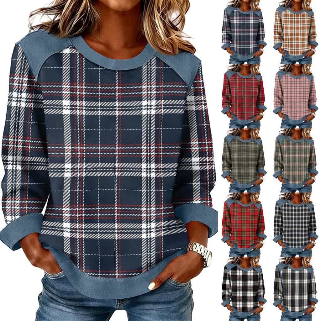 Women Denim Collar Patchwork Stitching Sweatshirt Casual Pullover Long Sleeve Shirts