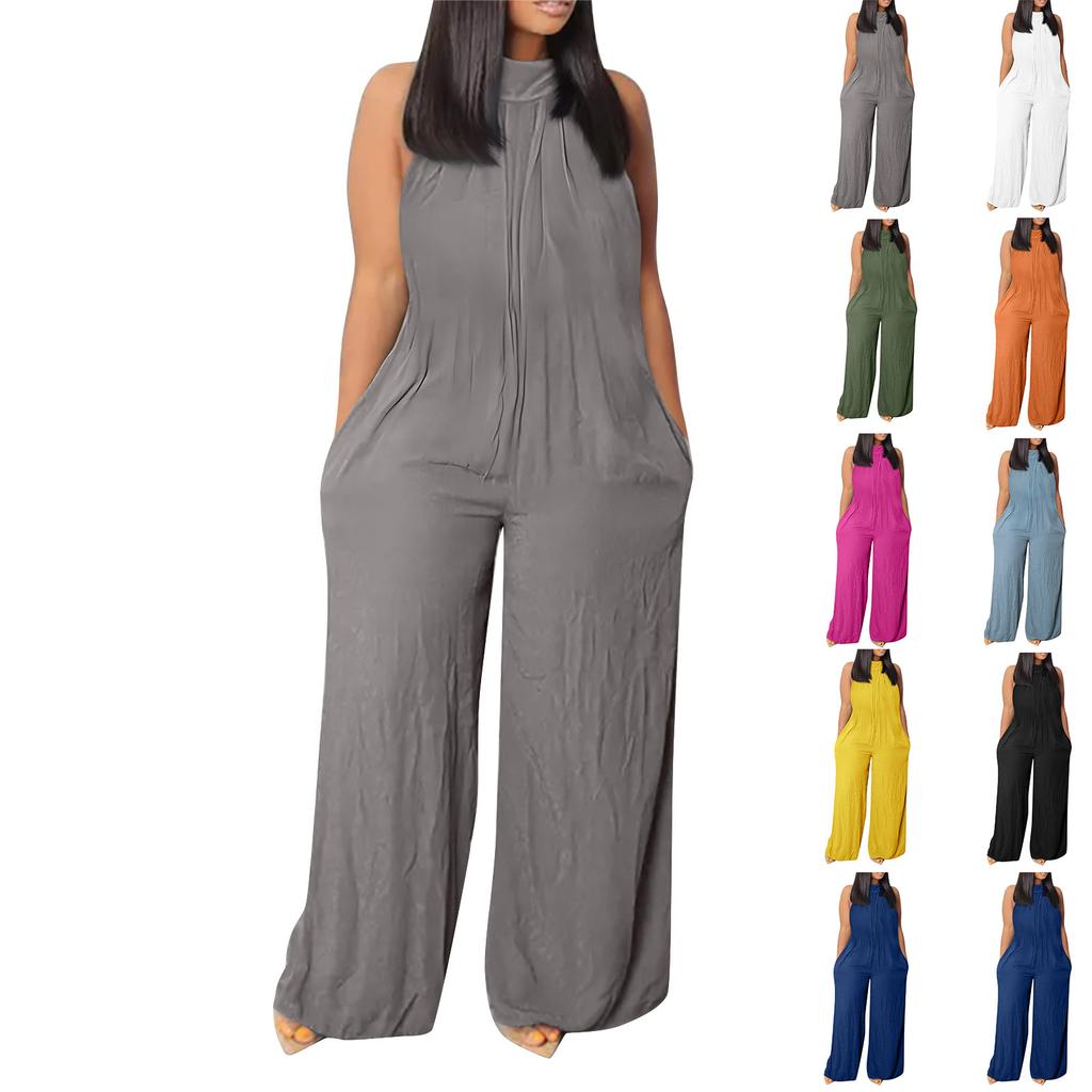 Women's Plus Size Jumpsuit Summer Beach Sleeveless Color Casual Fashion Wide Leg Jumpsuit
