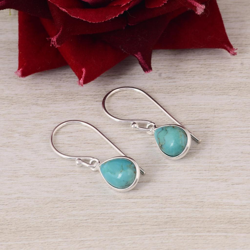 Kingman Turquoise Pear Earrings – 925 Sterling Silver Drop Earrings – Teardrop Gemstone Jewelry for Women.