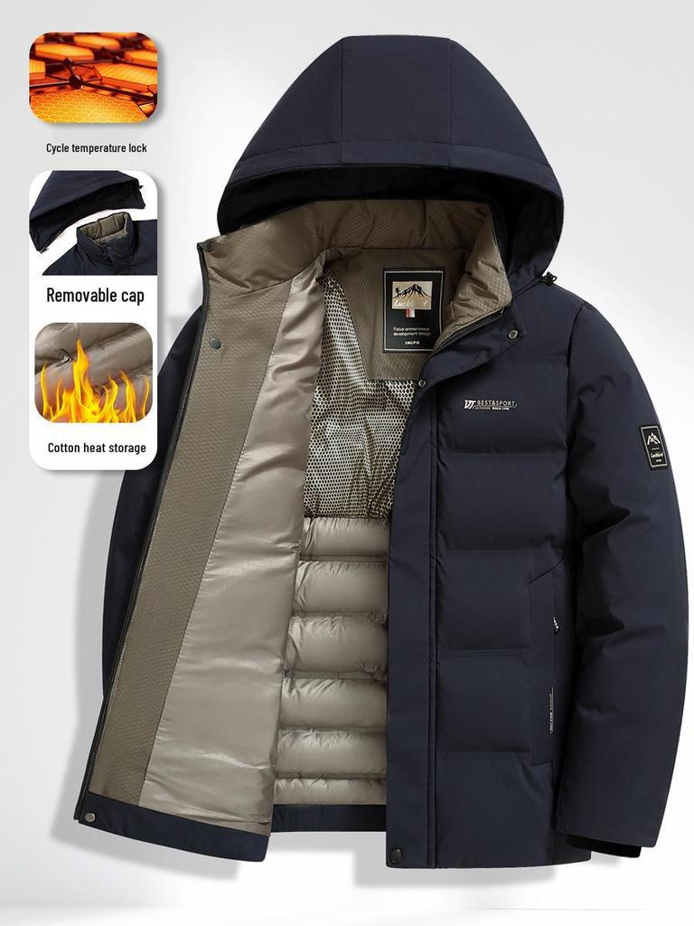 Stay warm and stylish this winter with our Men's Mid-Age Hooded Plus Size Winter Puffer Jacket. Designed for optimal comfort and warmth, this casual thick coat is crafted from high-quality polyester, ensuring durability and resistance to the elements. The interior is lined with soft polyester fiber, providing an additional layer of insulation. Its hooded design offers added protection against cold winds, making it an ideal choice for any winter outing. Perfect for mid-aged individuals seeking a blend of practicality and casual elegance, this jacket is a must-have addition to your winter wardrobe.