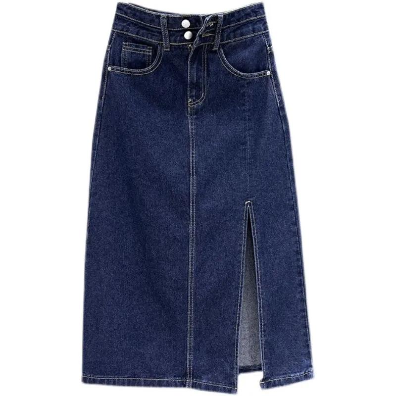 Denim Skirt for Women New Style Slimming Slit High Waist A-line Hip-hugging
