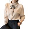 Lace Chiffon Shirt Women's Long Sleeved Spring And Bottoming Shirt, Bow Tie Shirt Design Top