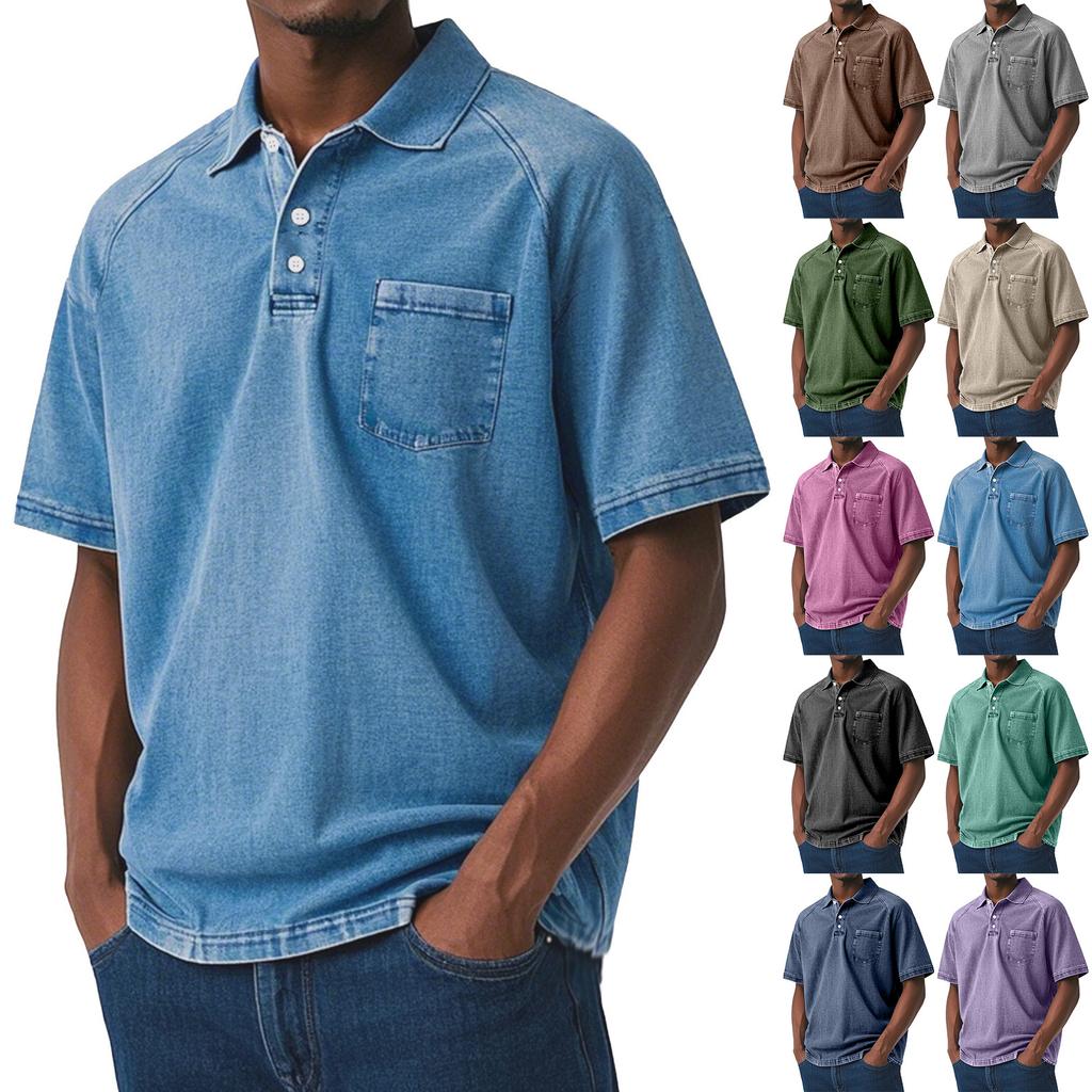 Men'S Fashionable Lapel And Shoulder Length Short Sleeved Casual Top