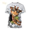Giraffe Print Children's T-Shirt Cute 3D Boys' Casual Cartoon Animal Short-Sleeve Top