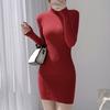Ladies' Casual Color High Neck Knitted Dress