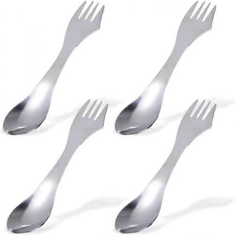 4 Pieces Portable Stainless Steel Fork Spoon, Camping Cutlery, Fork Spoon 2 In 1 for Outdoor Travel, Backpacking, Hiking