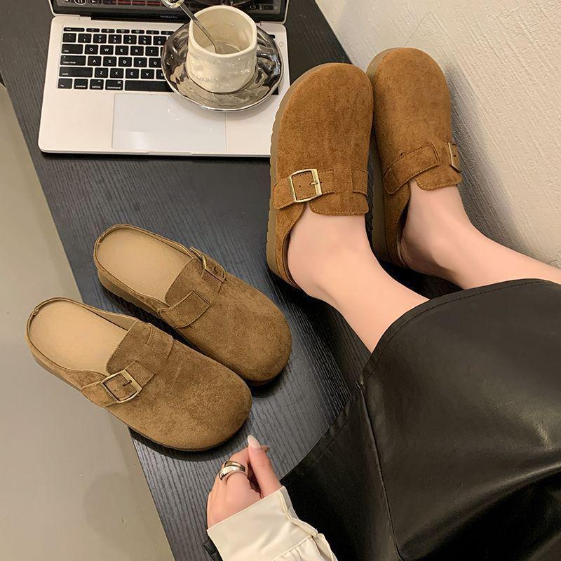 Spring and Autumn Birkenstock Shoes Are Not Tired, Non-slip Retro Feet, One Pedal, Soft-soled Bag Head and Half Slippers