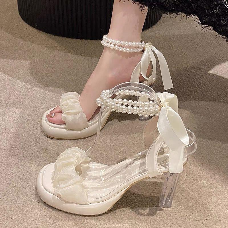 Transparent Heel High Heels Fashion Shoes Fairy Chain Summer Temperament Pearl Non-slip Versatile Women's Skirt Sandals