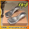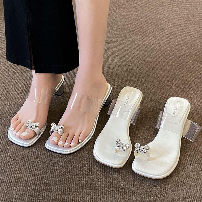 Transparent Fairy Thick Heel Bow Summer Wind Outer Wear Slippers Square Toe Crystal Sandals Clip