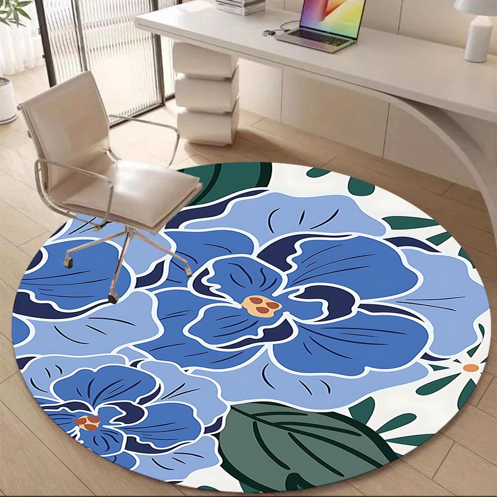 1PC Floral Pattern Office Round Area Rug, Mat Suitable For Office, Under Office Chairs Bedroom Living Room Home Decor, Room Deco