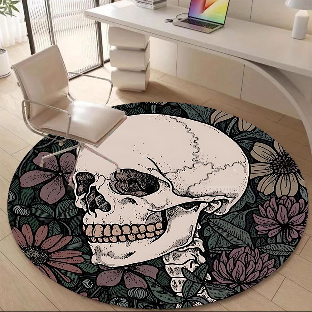 1PC Skull Flowers Office Round Area Rug, Mat Suitable For Office, Under Office Chairs Bedroom Living Room Home Decor, Room Deco
