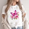 (Asian Size) Lovely Butterfly 90s Print Fashion Female Short Sleeve T-shirts Women's Top T Clothing Casual O-neck Graphic Tee