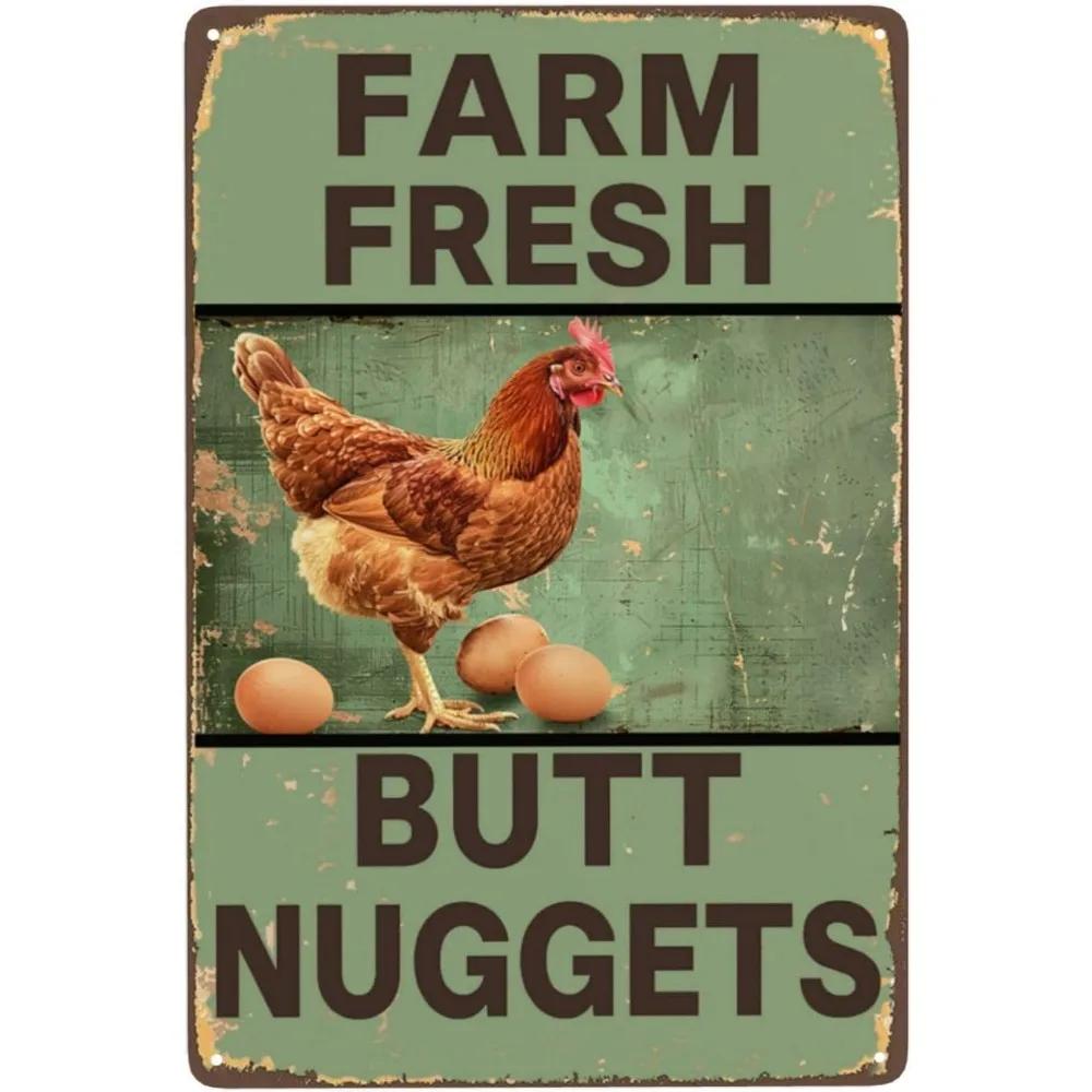 Funny Chicken Metal Sign Vintage Kitchen Decor Farmhouse Coop Accessories Gift