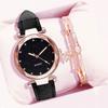 Watch Silver Pink Rhinestone Face Women's Watch Frosted Leather Strap Women's Casual Trend Two-piece Set Watch