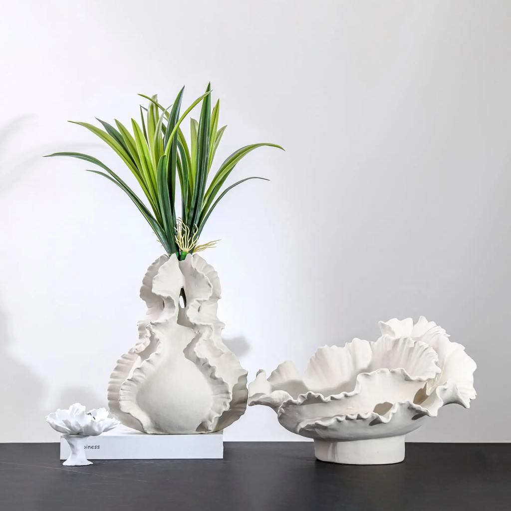 Ceramic Vase Fold Pattern Irregular Flower Wavy Shape Flower Pot Fruit Dish Desktop Storage Organization Home Decoration