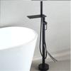 Tuqiu Black Bathroom Bathtub Faucet + Handheld Shower Free Standing Luxury Chrome Waterfall BathTub Mixer Taps Floor Mounted