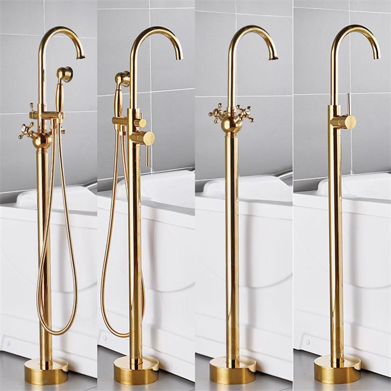 Tuqiu Antique Bathroom Bathtub Faucet With Hand Shower Hot and Cold Faucet Floor Standing Gold/Black/Chrome Bathtub Faucet