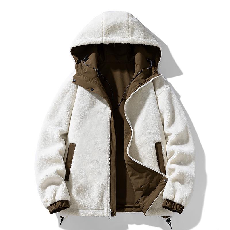 This luxurious, reversible hooded jacket offers a perfect blend of style and comfort. Crafted from high-quality polyester, it features a plush lambswool fleece exterior, providing exceptional warmth and softness. The reversible design allows for versatile styling options, making it an ideal choice for any occasion. With its cozy hood and durable construction, this jacket ensures you stay comfortable and fashionable in colder weather.