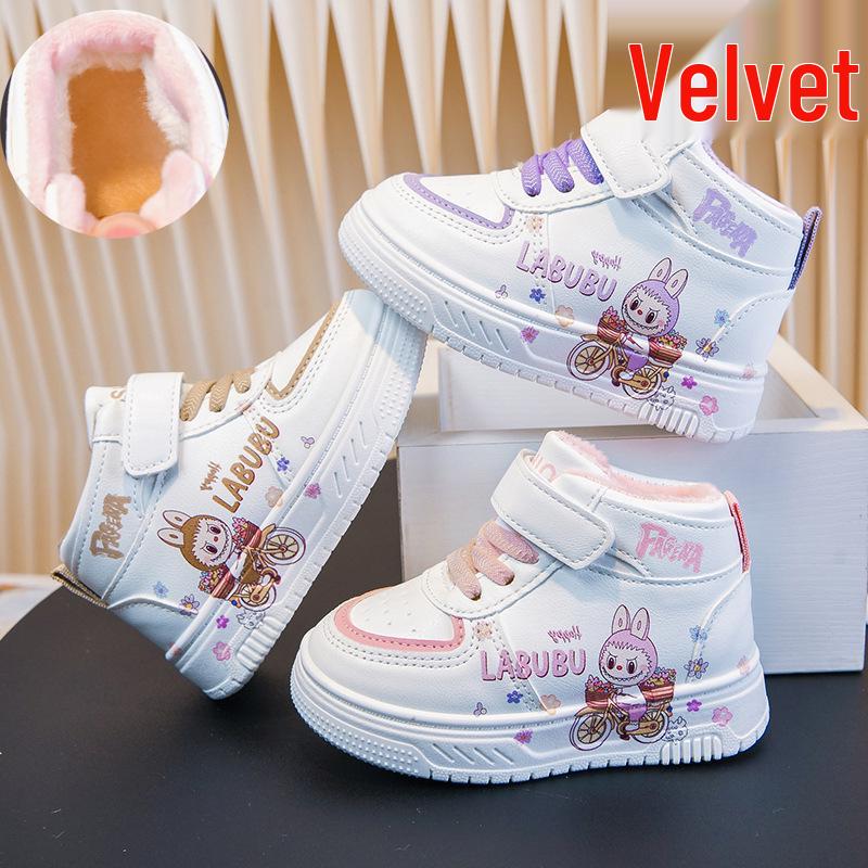 2025 Autumn/Winter Kids' Cartoon Mid-Top Leather Walker Shoes - Unisex, Trendy White