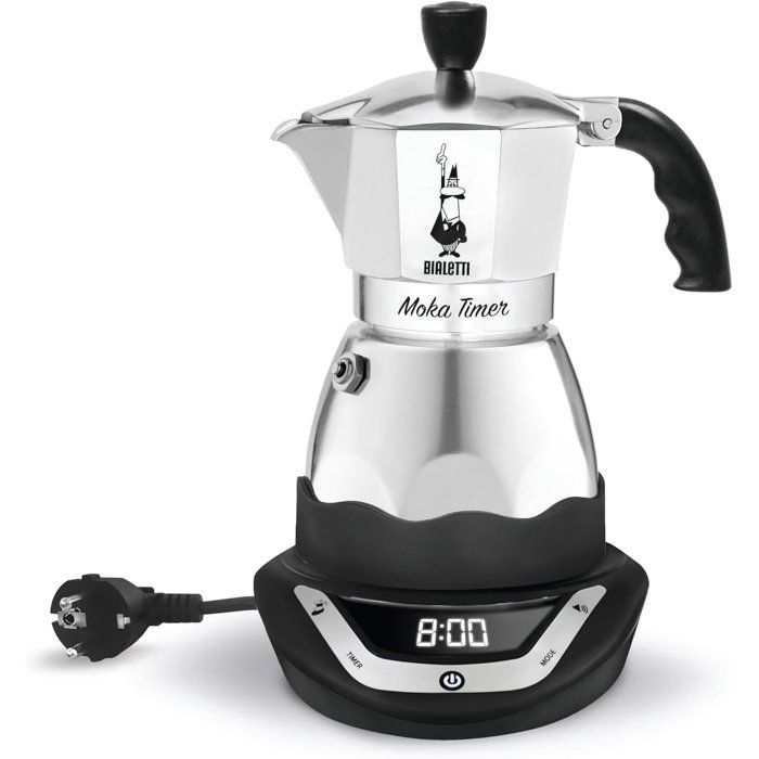 Electric Italian Coffee Maker - BIALETTI - MOKA TIMER - 3 Cups - 120 Ml - Stainless Steel