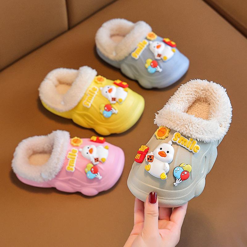 Keep your little ones cozy and safe with these children's waterproof, non-slip cotton slippers. Designed for autumn and winter, they feature a plush lining that provides warmth and comfort. The removable fur lining allows for easy maintenance and customization of warmth. Equipped with an EVA sole, these slippers ensure excellent grip and durability, making them perfect for home use.