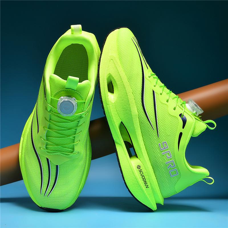 Designed specifically for young male runners, these ultra-light racing shoes are equipped with a carbon plate to enhance speed and performance. The breathable materials ensure maximum comfort, keeping feet cool and dry during runs. With shock-absorbing technology, these sneakers provide excellent support and cushioning, reducing impact for a smooth and enjoyable running experience. Ideal for aspiring young athletes, these shoes combine innovative design with practicality to help kids reach their racing potential.