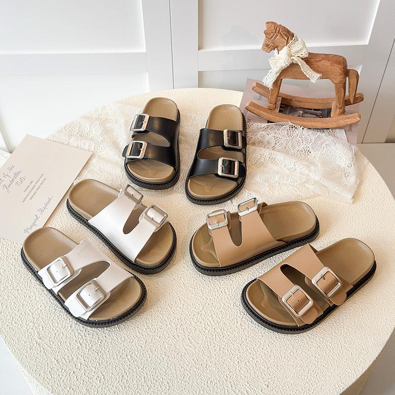 2026 Korean Style Leather Buckle Sandals for Girls - Casual Summer Outdoor Children's Birkenstock-Inspired Half-Closed Shoes