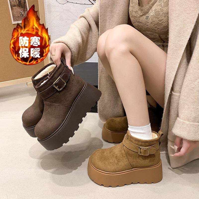Cm Thick-soled Heightening Small Martin Boots Women's Short Boots Piled and Thickened Warm Snow Boots Cotton Shoes