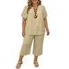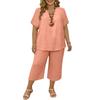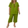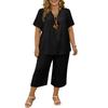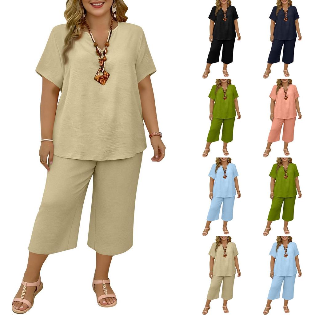 Women's 2,Piece Casual Color V Neck Short Sleeve Top And Wide Leg Pants Set