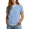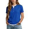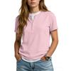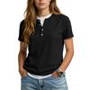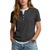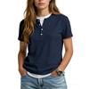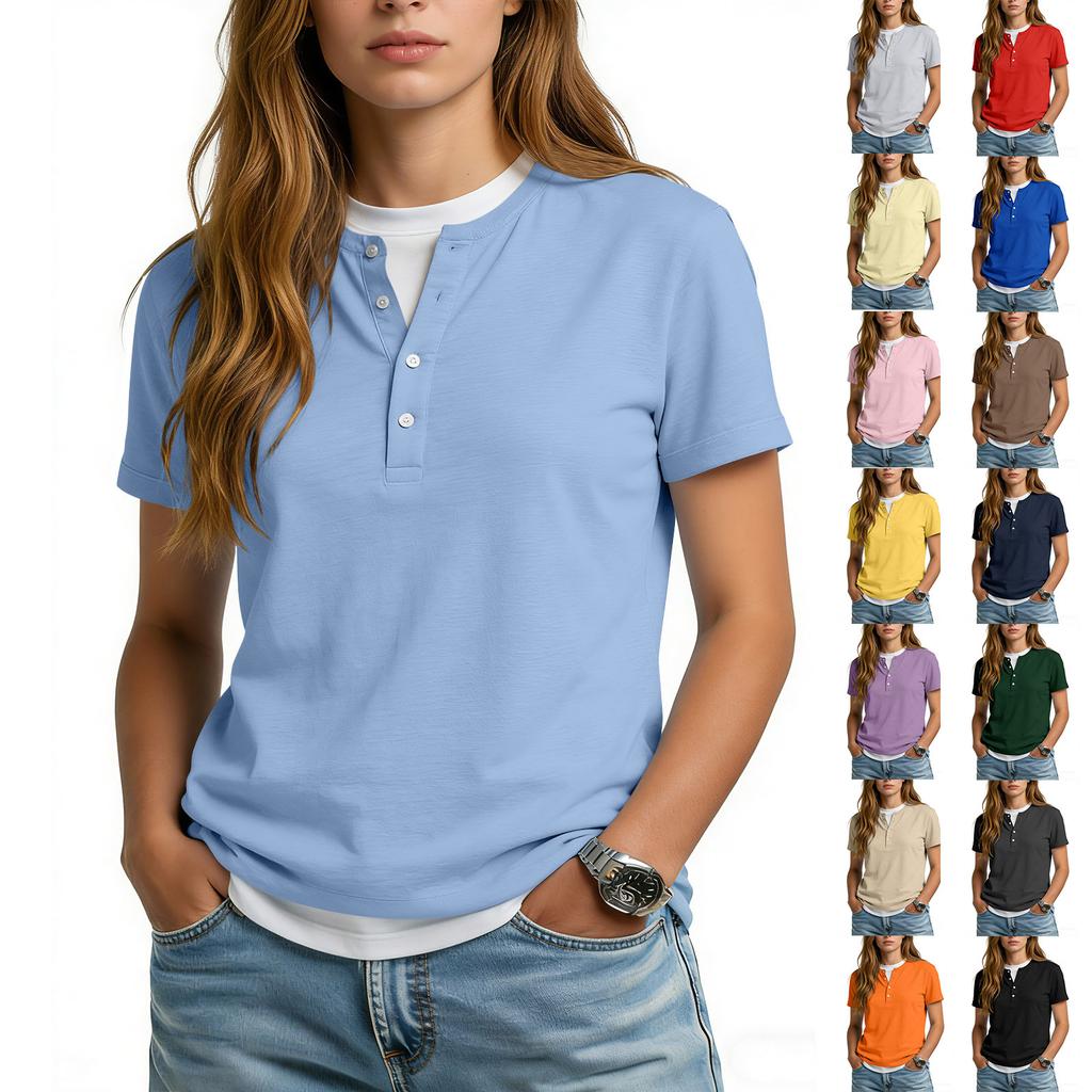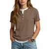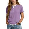 Women's Casual Color V,neck Short,sleeved T,shirt With Decorative Buttons.