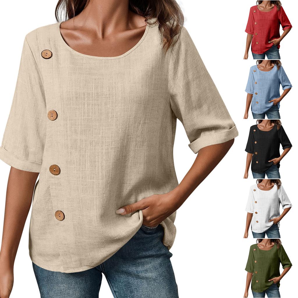 New Women's Cotton And Linen Button,down Casual Top