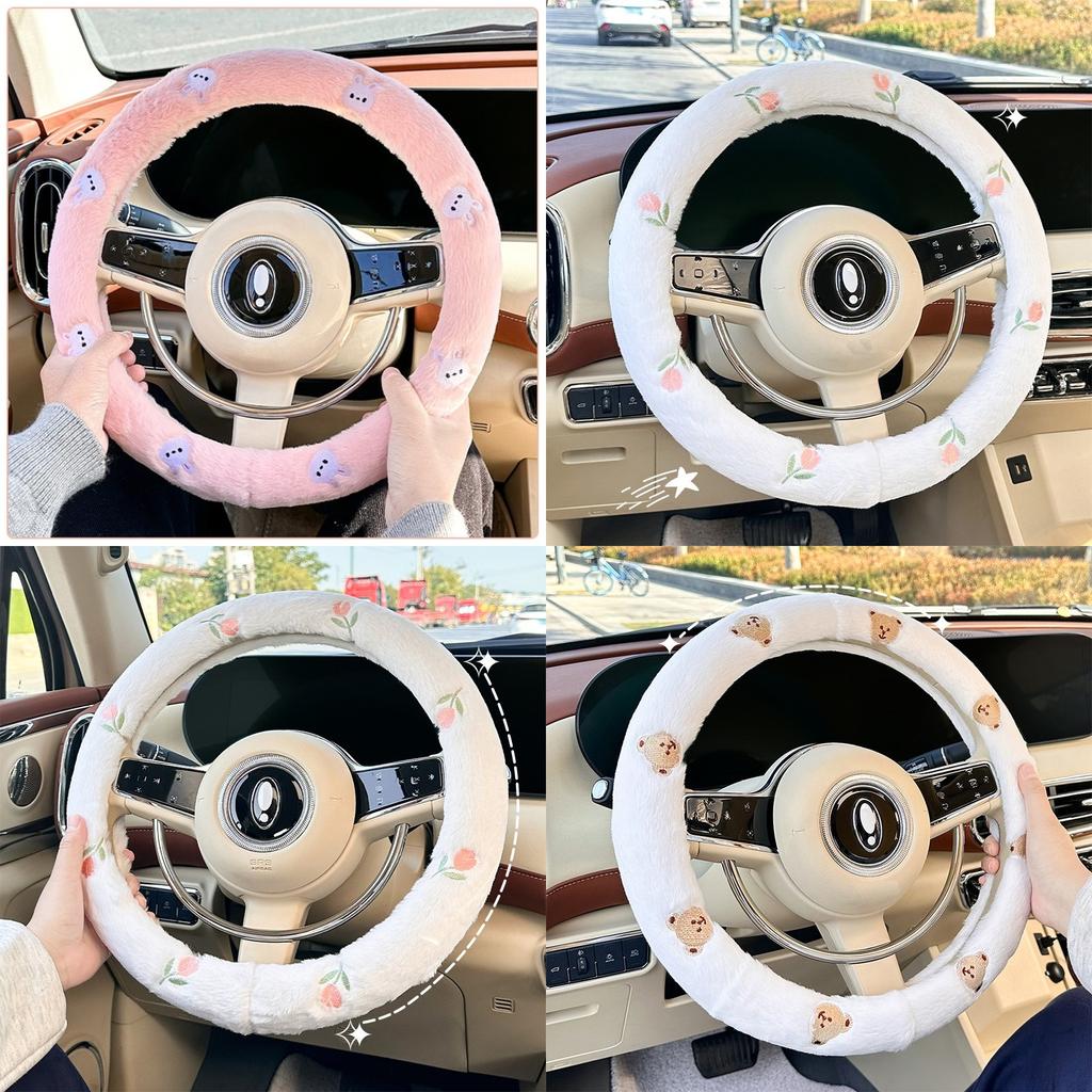 Car Steering Wheel Cover Winter Plush Short Plush Cute Non, Warm Handlebars Cover Steering Wheel Cover Decoration
