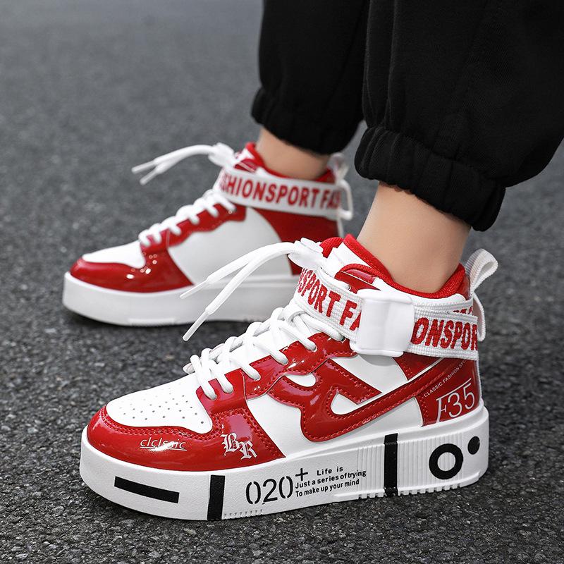 These high-top sports shoes are the perfect addition to your child's autumn and winter wardrobe, designed specifically for boys in middle and big kid sizes. Featuring a trendy leather upper, these shoes combine style and durability to withstand active play. The rubber sole ensures excellent grip and flexibility, making them ideal for various sports and outdoor activities. With their modern design, these shoes not only offer comfort but also keep kids looking stylish during the colder months. Perfect for everyday wear, they provide the support and stability needed for growing feet.