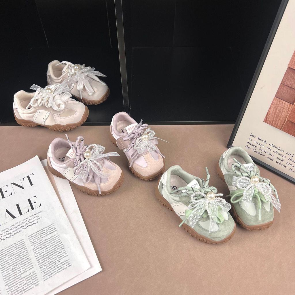 Introduce your little one to a charming combination of elegance and functionality with these delightful sports shoes. Designed for girls, these lightweight shoes feature a non-slip rubber sole, ensuring safety and stability during any activity. Adorned with an adorable bowknot and delicate pearls, they add a touch of princess flair to everyday wear. Perfect for both active play and casual outings, these versatile shoes seamlessly blend style and practicality.