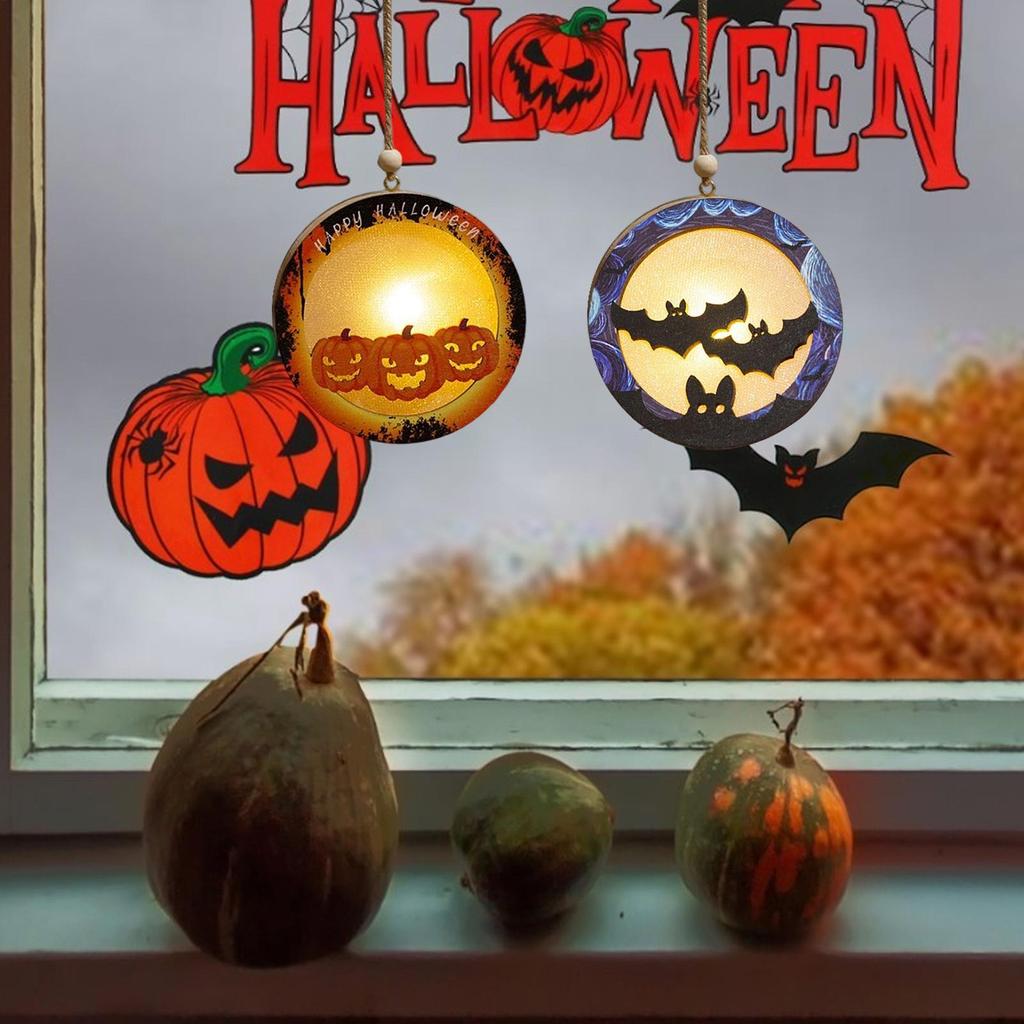 Halloween Pumpkin Night Light Lantern Light Up Pumpkin Bat Decor 2pcs Battery Operated Holiday Home Decor for Haunted House