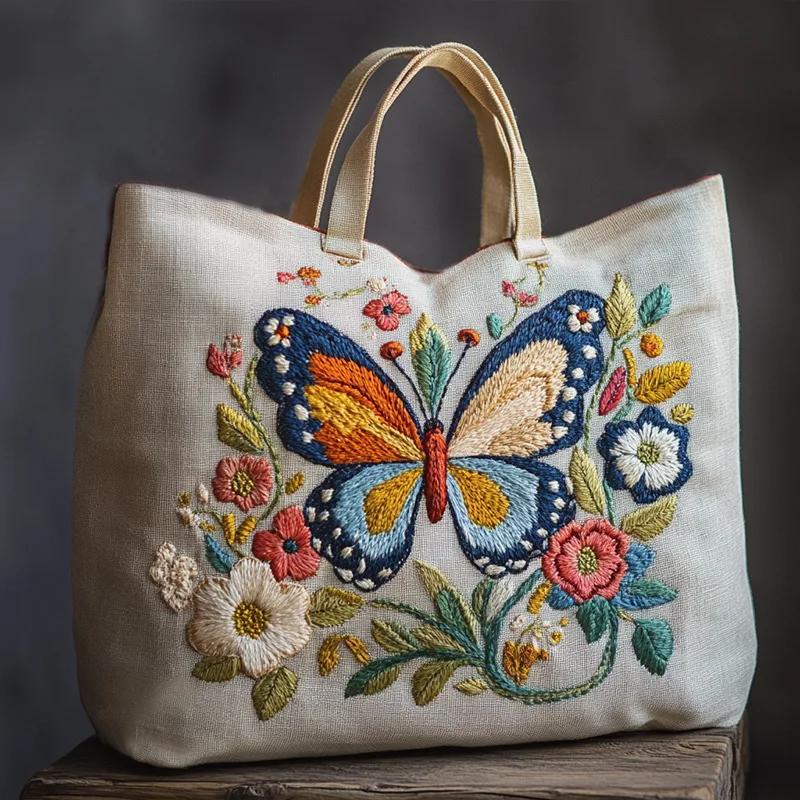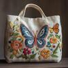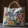 DIY Linen Tote Bag Cross Stitch Sewing Needlepoint Embroidery Kit with Stamped Flower Butterfly Pattern Hoops Threads