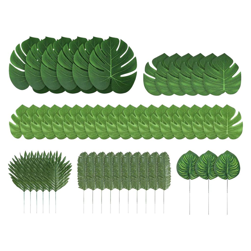 90Pcs Monstera Leaves 6 Kinds Artificial Vivid Tropical Leaves for Weddings Photo Shoots Events Banquet Jungle Beach Theme