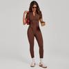 Women's Short-Sleeve Half-Zip Tummy-Control Yoga Jumpsuit