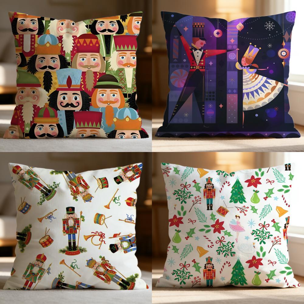 Popular Nutcracker Cushion Cover Soft Washable Pillow Case Multi-Scene for Couch Bed Travel Office Use