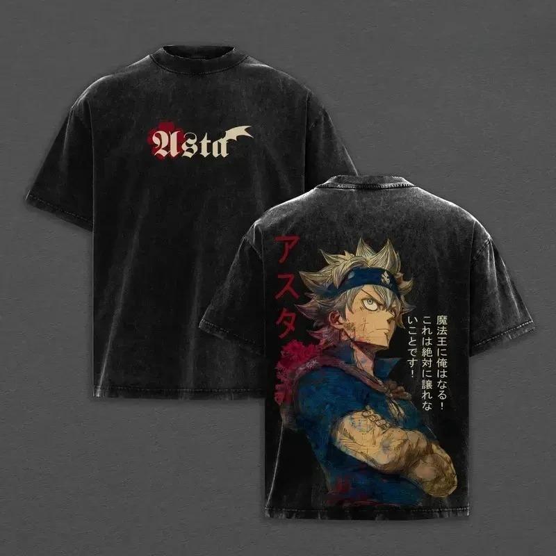 Asta Printed Tee Anime Black Clover Clothing Men Women Retro Washed T-shirts Short Sleeve Tshirt Harajuku Male Cotton T Shirt