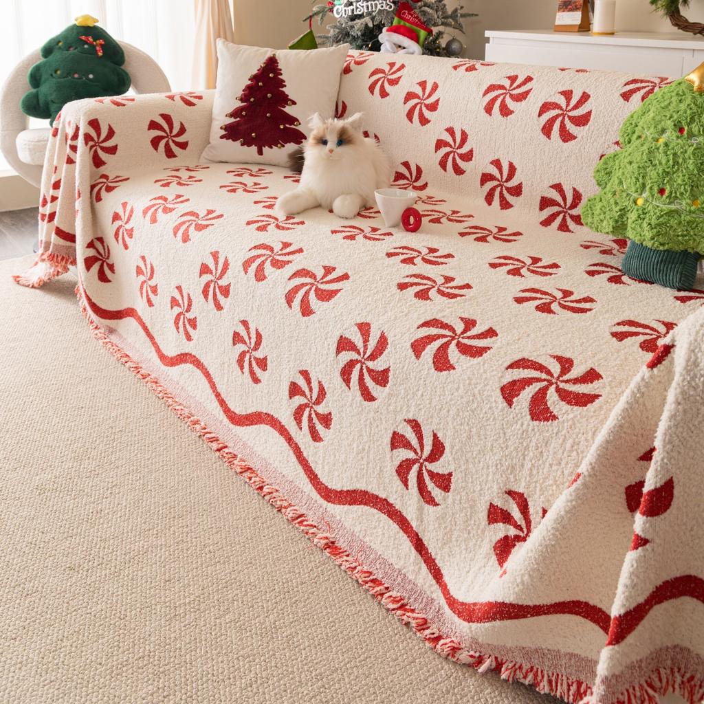 1pc Christmas Candy Fluffy Warm Sofa Towel with Tassels, Sofa Cover Blanket for Living Room - Cozy Throw Blanket for Couches