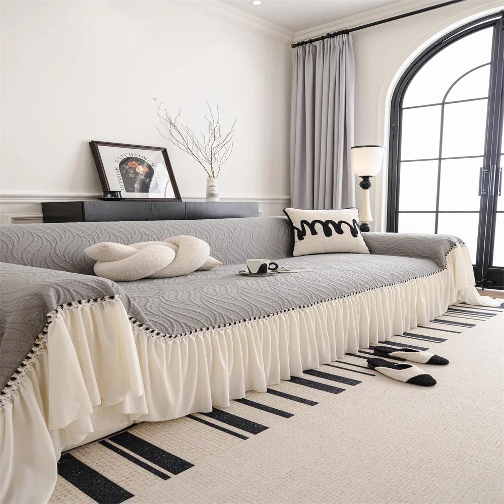 Sofa Cover with Skirt Design Anti-Slip Cat-Resistant Bubble Pattern Four Seasons Sofa Protector