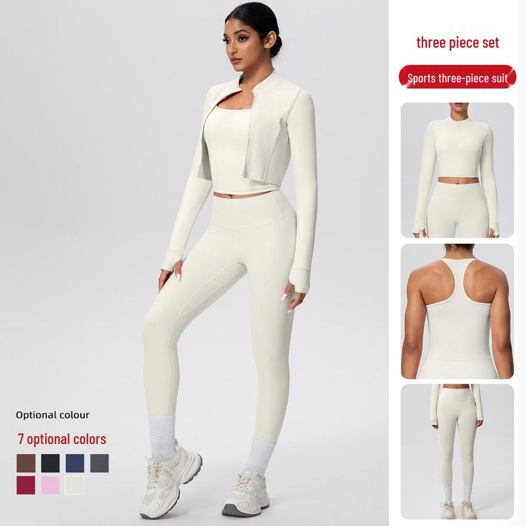 Women's Fitness Yoga Set: Shockproof Ribbed Tank, Zipper Jacket, High-Waisted Skin-Friendly Pants
