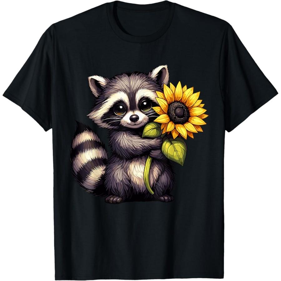 Raccoon Holding Sunflower Cute Flower T-Shirt